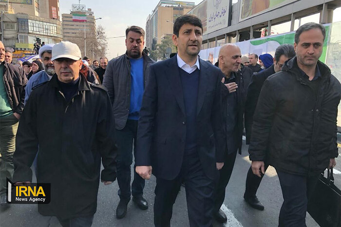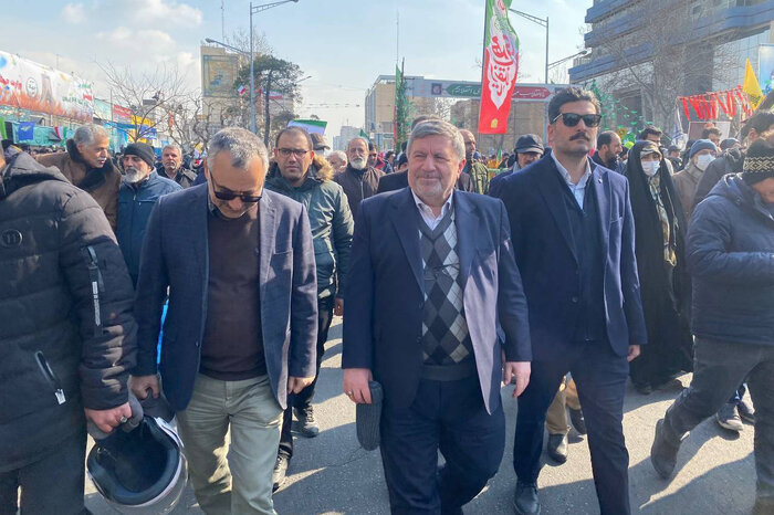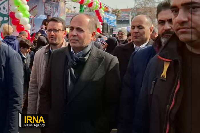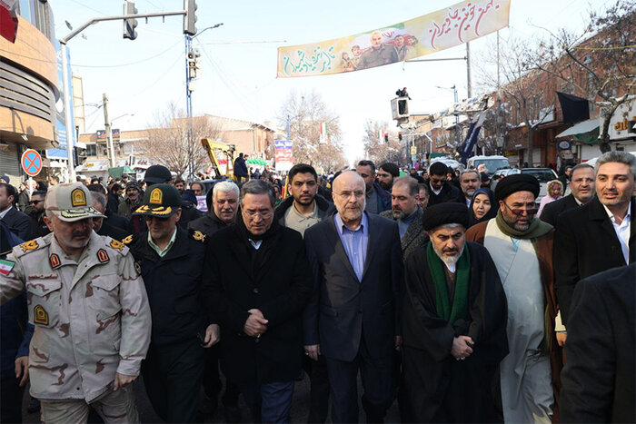 محمد باقر قالیباف رئیس مجلس شورای اسلامی در راهپیمایی ۲۲ بهمن شهر ارومیه
