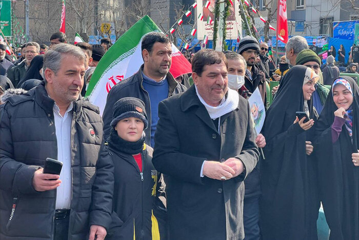 حضور مسعود پزشکیان رئیس جمهور در راهپیمایی ۲۲ بهمن